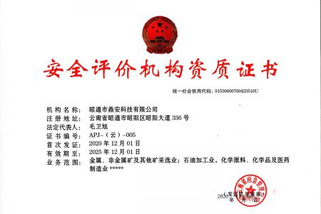 2003年11月10日,昭通市鼎安科技有限公司成立,初始主要從事第三方安全工程技術(shù)服務(wù),經(jīng)多年運(yùn)營,發(fā)展為多專業(yè)綜合科技平臺(tái),為社會(huì)提供多種專業(yè)技術(shù)服務(wù)工作。 現(xiàn)公司注冊資金為1200萬元,公司法定代表人:毛衛(wèi)旭。公司主要業(yè)務(wù):安全評價(jià)、安全標(biāo)準(zhǔn)化評審、安全工程技術(shù)服務(wù);環(huán)境監(jiān)測、職業(yè)衛(wèi)生檢測、檢驗(yàn);法律訴訟及非訴訟服務(wù);司法鑒定、固定資產(chǎn)投資項(xiàng)目節(jié)能服務(wù);工程咨詢;工程測量測繪;安全教育培訓(xùn)等。是安全生產(chǎn)服務(wù)、安全教育培訓(xùn)機(jī)構(gòu),也是環(huán)境監(jiān)測和職業(yè)衛(wèi)生服務(wù)機(jī)構(gòu),同時(shí)也是綜合的檢測檢驗(yàn)、綜合科技平臺(tái)服務(wù)機(jī)構(gòu)。多年來為公、檢、法、司、軍、警、海關(guān)、仲裁、安監(jiān)、工礦商貿(mào)企業(yè)、社會(huì)團(tuán)體及個(gè)人提供多專業(yè)技術(shù)服務(wù)。